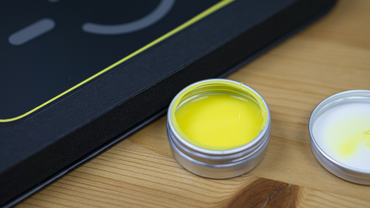 打开盒子,一切就能解释的通了。因为除了手机壳本体之外,奥海还专门赠送了一小罐非牛流体的材料。(好消息是这种材料真的很好玩,坏消息是我玩了半个小时,竟然忘记拍手机壳了)。